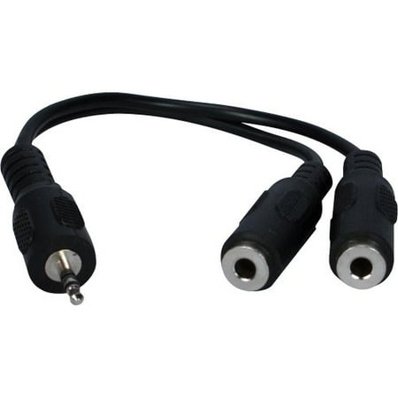 (Connector: 2.5mm Male to Two 3.5mm Female) Technical InformationCable Type: BNC/Mini-phoneCable Characteristic: Splitter CableCable Length: 6"Connector on First End: 1 x 2.5mm Male AudioConnector on Second End: 2 x 3.5mm Female AudioConductor: CopperShielding: YesDevice Supported: MP3 Player, PDA, iPod, Headset, Speaker, CD Player, Microphone, WalkmanPhysical CharacteristicsColor: BlackMaterial: Polyvinyl Chloride (PVC) - Jacket